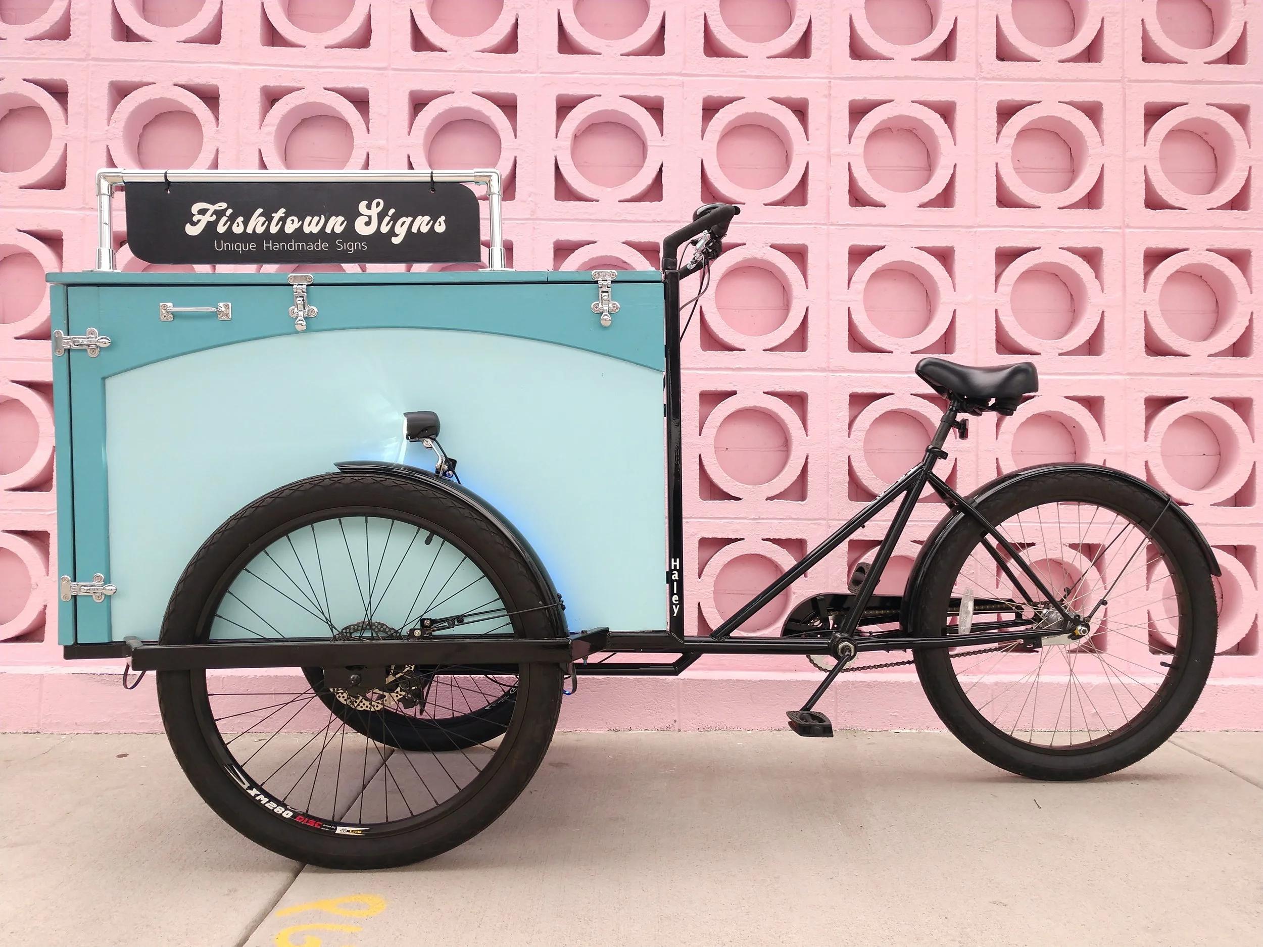 My Haley Trike is looking good today, especially against the pink brick outside of LMNO in Fishtown.
